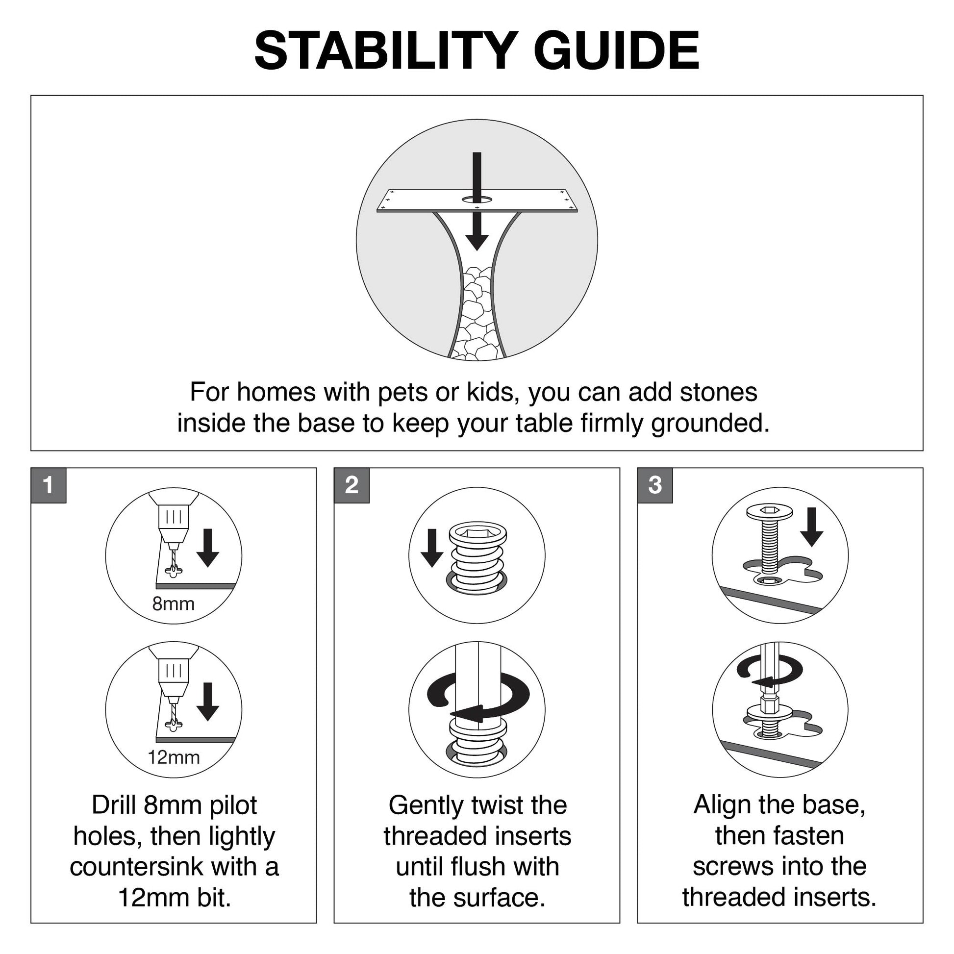 • Easy Installation: Each counter table base comes with a pre-drilled mounting plate. This plate attaches directly to wood, metal, or composite tops, and you can get it installed in just a few minutes using basic tools.