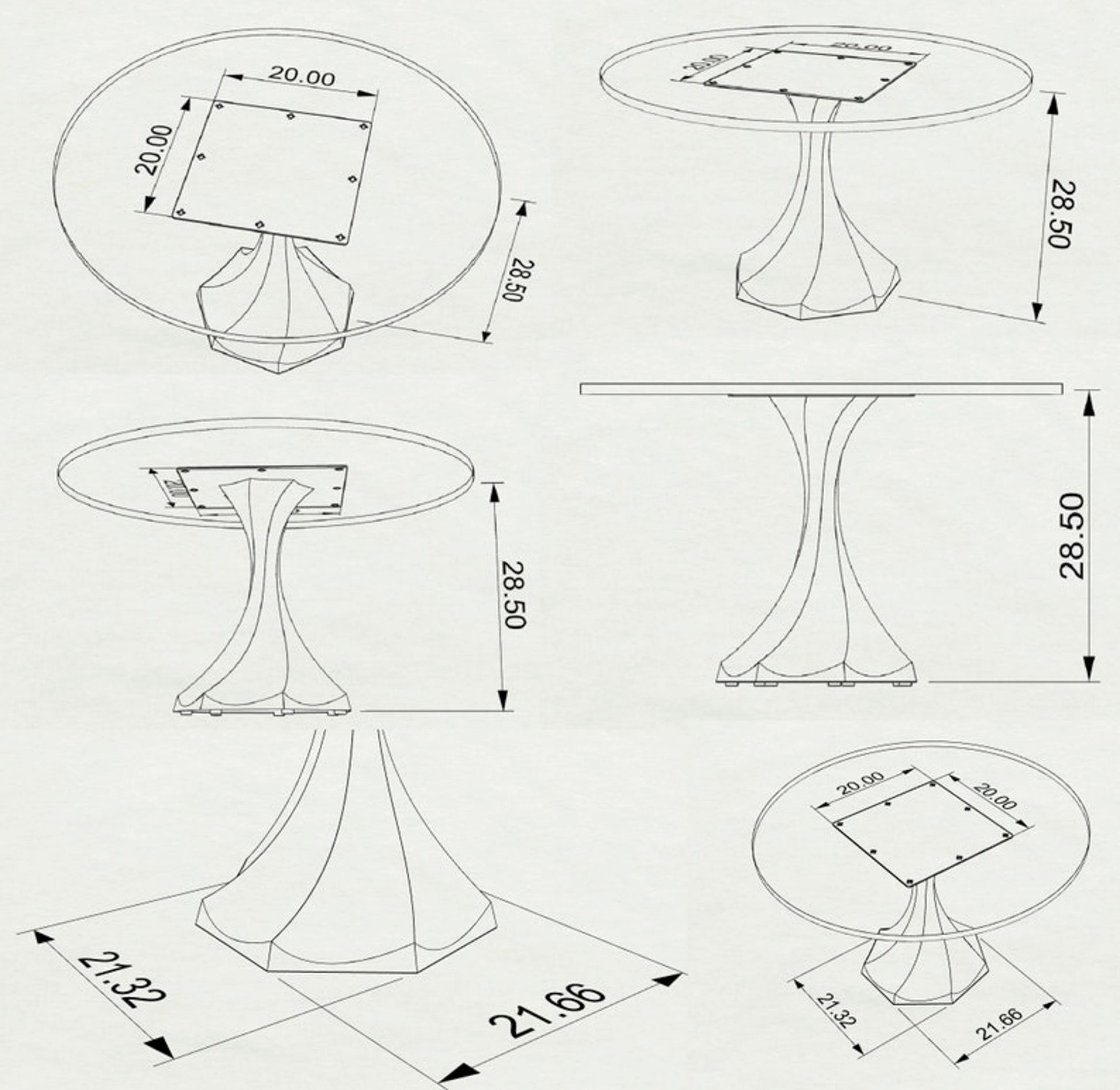 • Professional Mounting System: The stainless steel gold table legs have a heavy-duty square plate 20" L x 20" W with 8 holes already drilled in exactly the right spots. Easily screw them into your table top, and you're all set in minutes. The strong plate spreads the weight evenly and keeps everything secure.