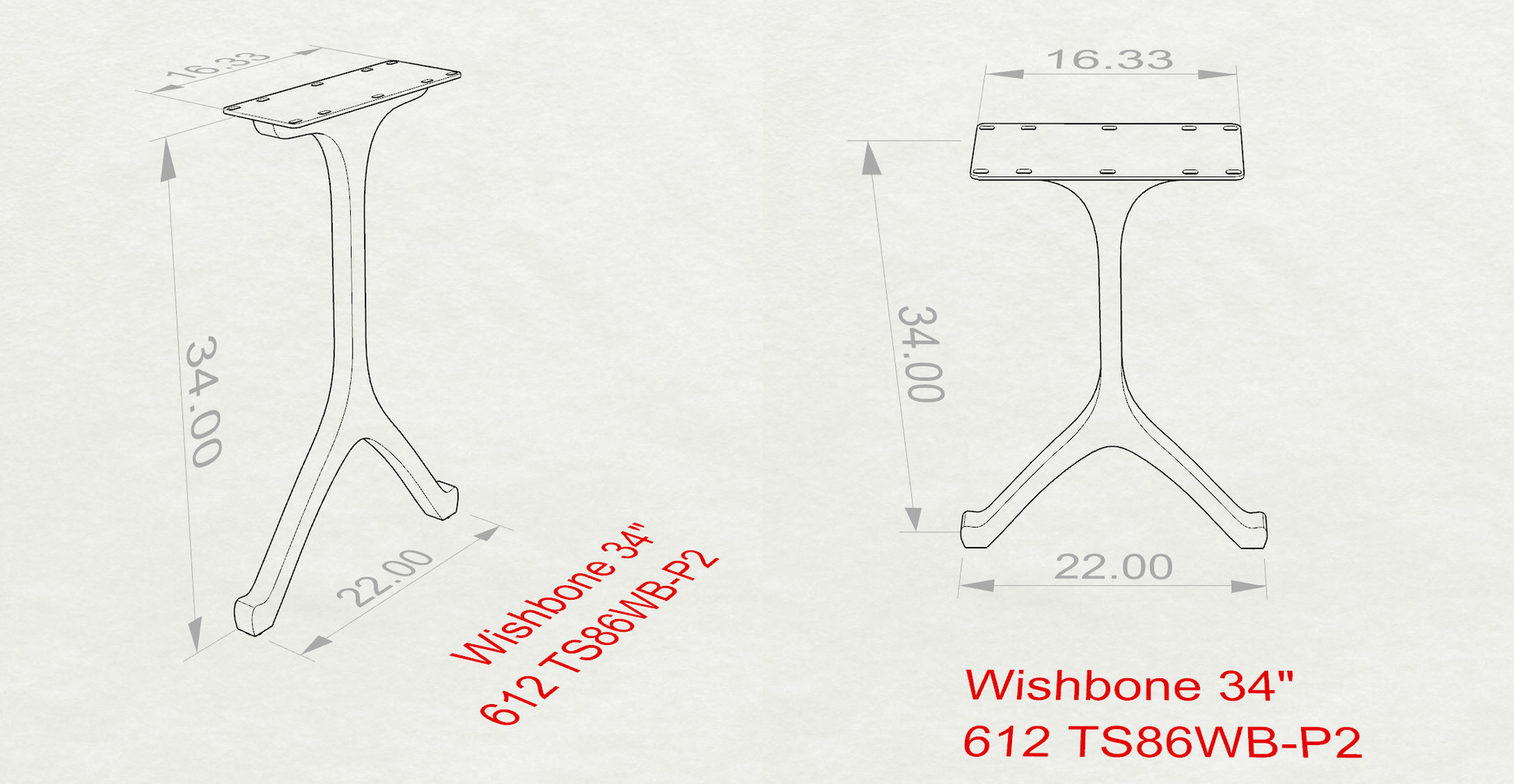 Counter Table Legs 612 Wishbone 34" H for Dining Tabletop