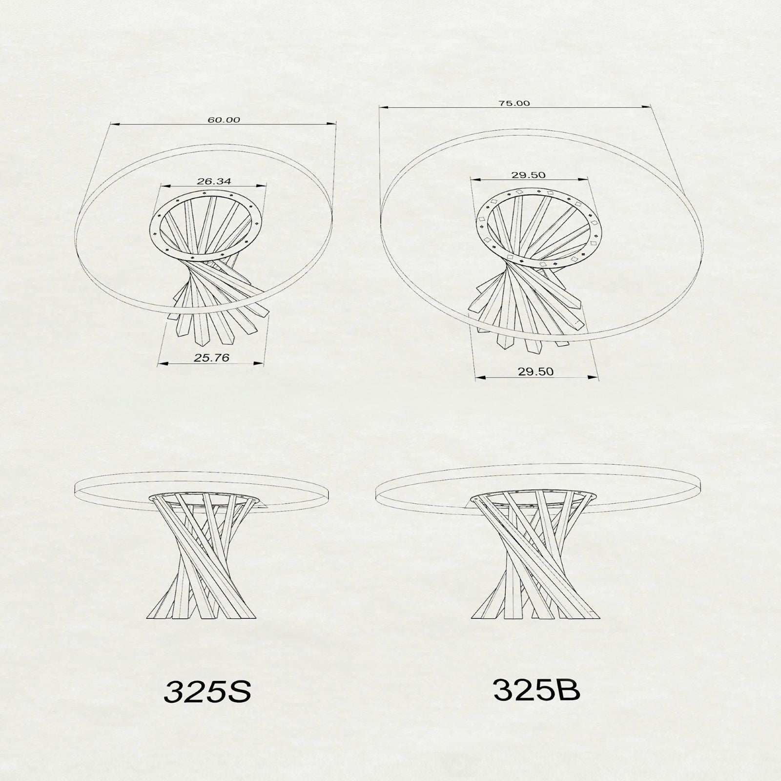 Metal Table Base - 325 Filar provides versatility and creative charm, making it an ideal match for various tabletop designs. Whether your tabletop is made of wood, glass, or metal, this base seamlessly complements different materials, adding a touch of artistic elegance to any setting. Its adaptable and innovative design enables it to harmonize with a variety of aesthetics, giving you the freedom to create a personalized and harmonious space.